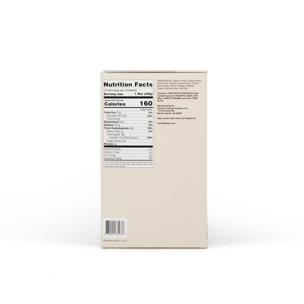 Active Stacks Honey & Crisp Rice Bar - Vanilla Coconut (12-Pack)